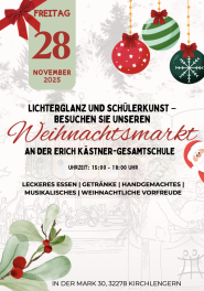 Am 25.11. fand in den späten Nachmittagsstunden nach zweijähriger Coronapause wieder unser Schulweihnachtsmarkt statt. Neben einer Vielzahl an aufwändig erstellten Schülerbasteleien, die an den vorangegangenen Projekttagen hergestellt wurden, gab es auch ein vielfältiges Unterhaltungsprogramm.