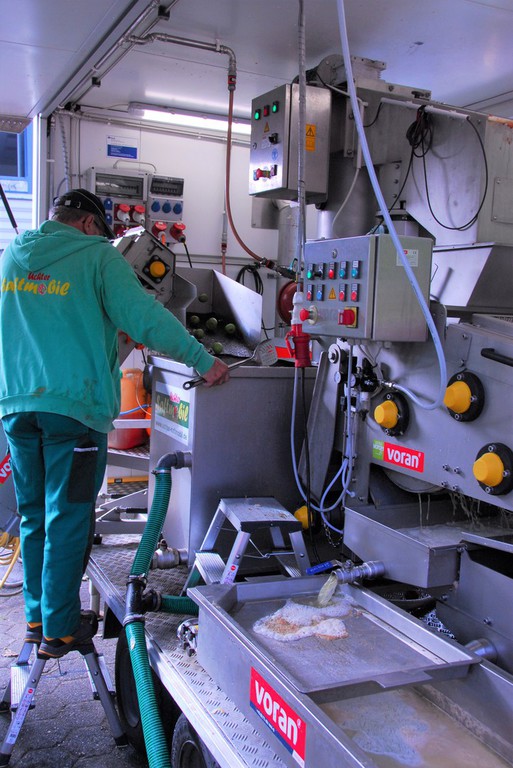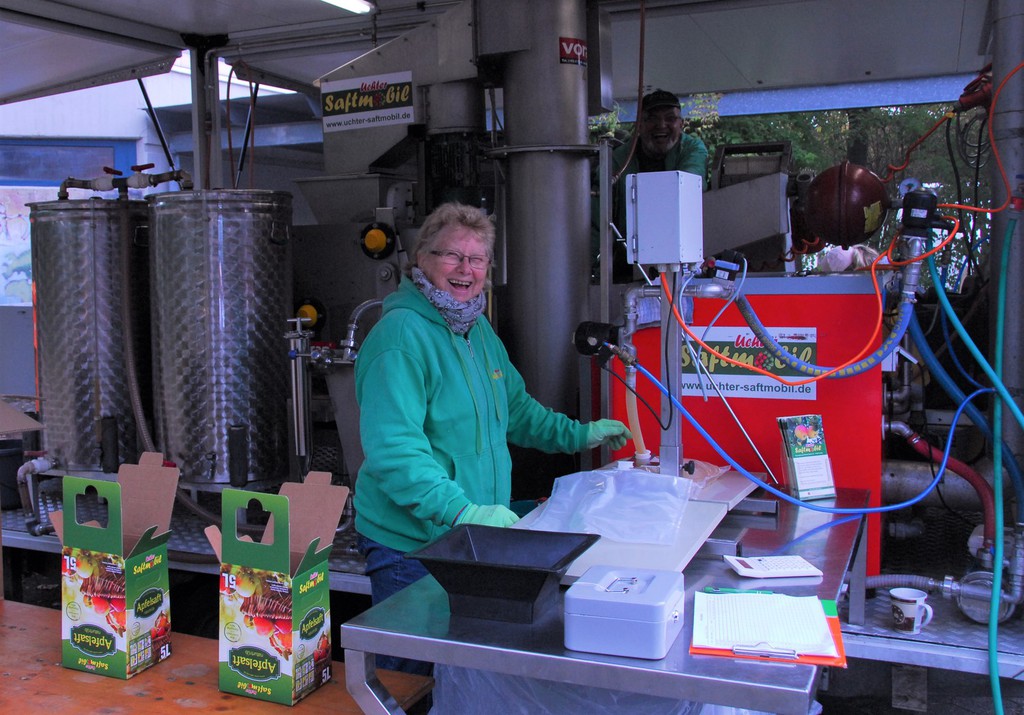 Das Uchter Saftmobil war an diesem Tag zu Gast und Jedermann konnte seine mitgebrachten Äpfel direkt vor Ort zu Saft pressen lassen. Als Spende für das Pressen der Äpfel erbat die Schule hierbei 10 % der zu pressenden Menge an Äpfeln für den Schulladen.