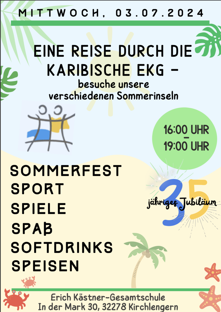 Am 3. Juli 2024 feierte unsere Schule ihr 35-jähriges Bestehen mit einem Sommerfest unter dem Motto "Eine Reise durch die karibische EKG". Trotz des wechselhaften Wetters war das Fest ein voller