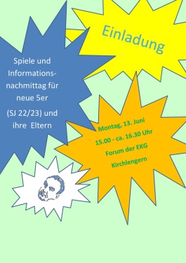 das Schuljahr neigt sich dem Ende zu und bis zu den Sommerferien sind es nur noch wenige Wochen. Wir möchten euch und Sie herzlich zu einem Spiele- und Informationsnachmittag einladen.