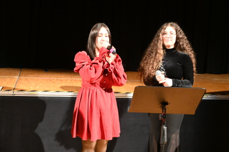 Die beiden Schwestern und Schülerinnen Lamees Subeh aus der 9d und Louna Subeh aus der Q1 faszinierten das Publikum anschließend mit einer Gesangsdarbietung. Sie sangen gemeinsam das Lied