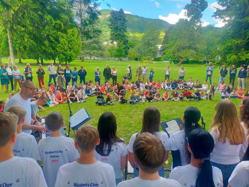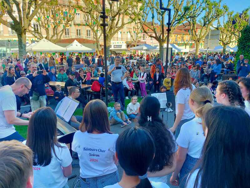 „Kästners Chor“ - T-Shirts kam es noch zu spontanen Einzelauftritten im Publikum. Das abendliche Abschlussfeuerwerk und Lichterspiel vor der Kirche „Saint Bruno“ war das absolute Highlight. Hierzu