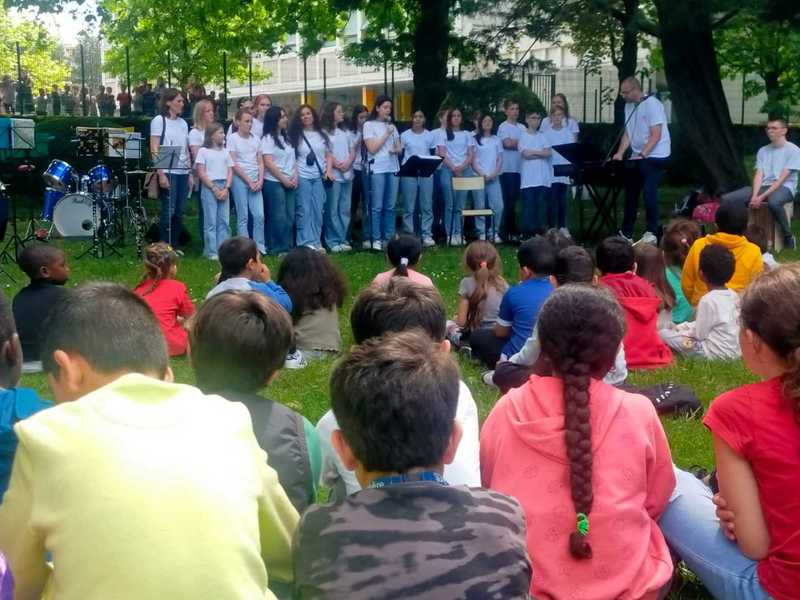 praktisch. Auch mit der Verständigung auf Französisch, Englisch und Deutsch klappte es ganz gut. Wir trafen uns um 9.30 Uhr zum Proben in der Musikschule und am Nachmittag fuhren wir mit dem Zug