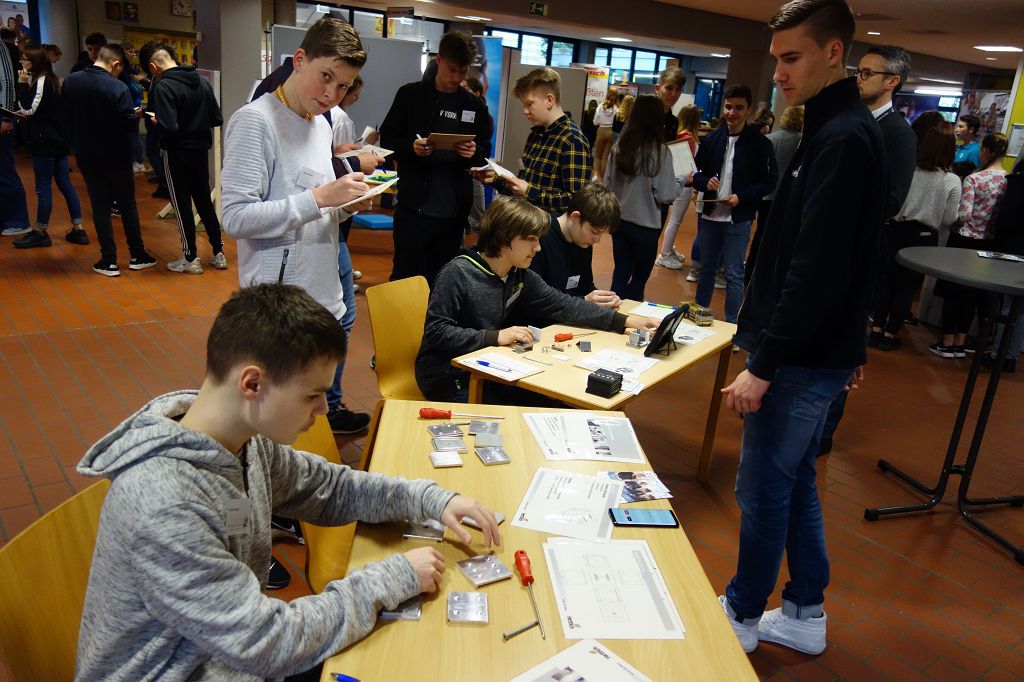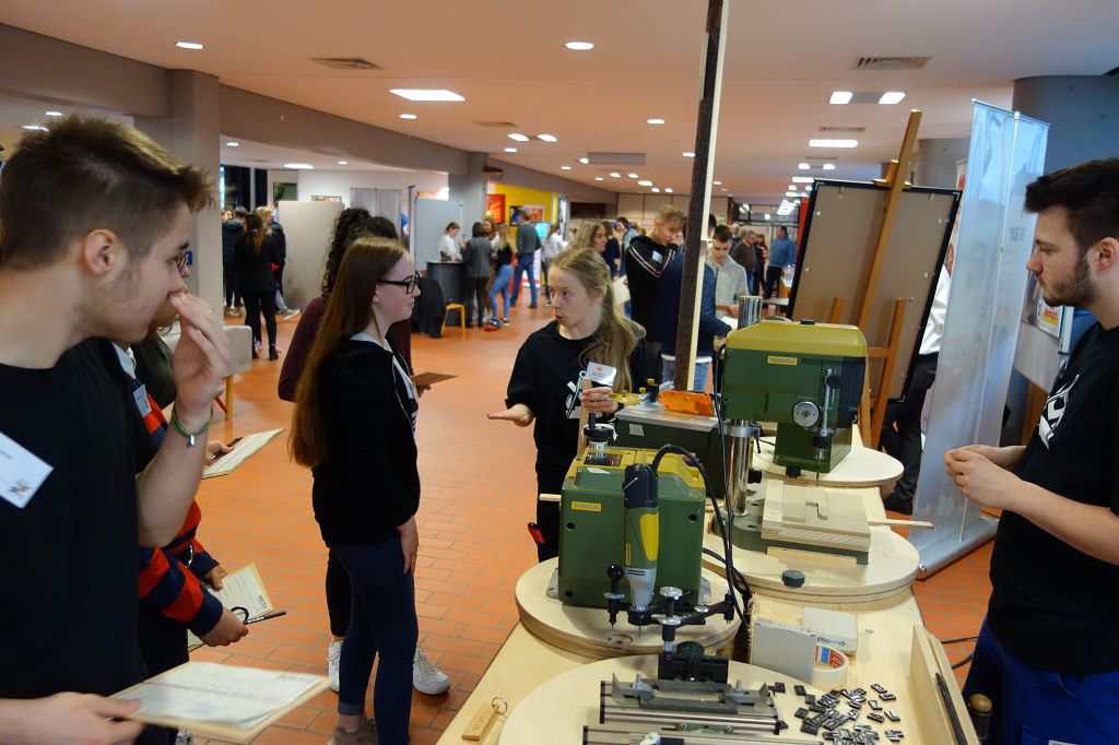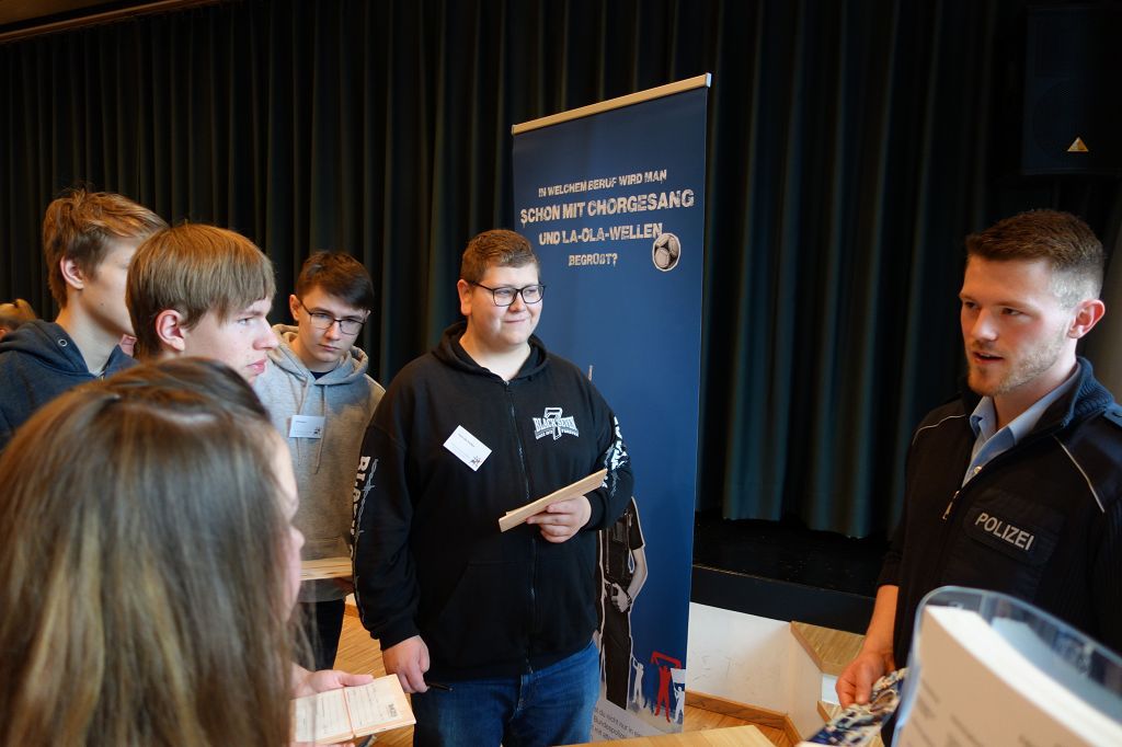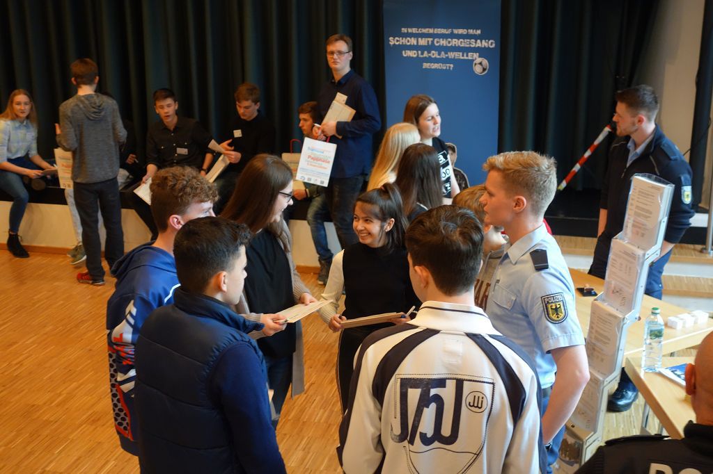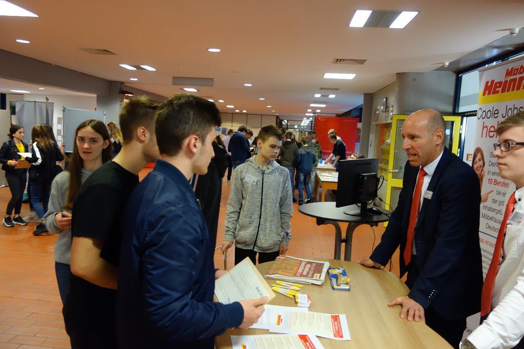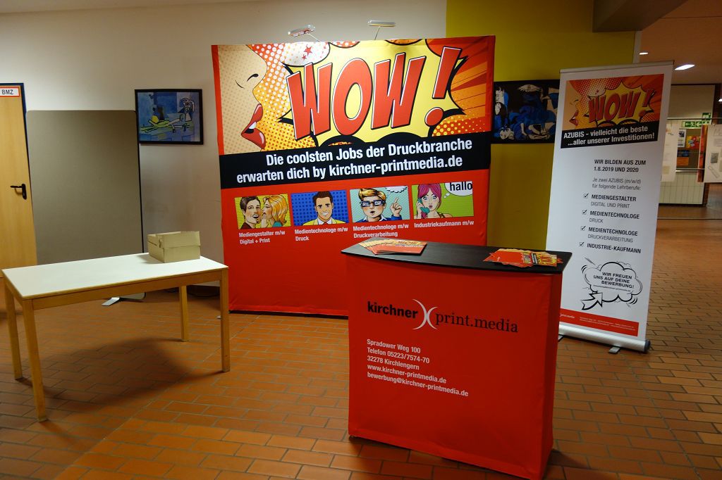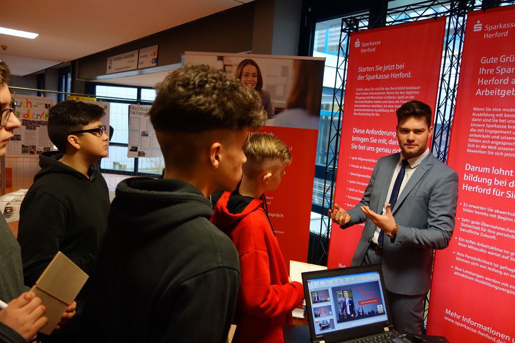 Es war vor kurzem wieder soweit: Die IBeM fand an der Erich Kästner-Gesamtschule in Kirchlengern statt. Im Forum, in den Gängen und Fluren der Schule informierten verschiedene Firmen und Institutionen – unter anderem die Bundespolizei und die Bundeswehr, aber auch viele regionale Unternehmen, wie Hettich und Hansa-Heemann, die Schülerinnen und Schüler der Jahrgänge 8 bis 10 über ihre Ausbildungsmöglichkeiten. Wie schon in den Vorjahren, konnten ebenfalls die Praktikumsplakate des 10. Jahrgangs begutachtet werden, auf denen die Schülerinnen und Schüler des aktuellen Abschlussjahrgangs Eckdaten und ihre ganz persönlichen Erfahrungen innerhalb ihres im Januar stattgefundenen Berufswahlpraktikums an den interessierten Mann bzw. an die interessierte Frau von morgen bringen konnten. Tatsächlich fanden nicht nur zukünftige Arbeitnehmerinnen und Arbeitnehmer diese Plakatpräsentationen interessant. Auch Menschen, die bereits in Lohn und Brot stehen, zeigten reges Interesse an den Schilderungen der Schülerinnen und Schüler – nämlich die Ausbildungsbeauftragten regionaler Unternehmen, die sich mit dem Feedback der jungen Menschen gewinnbringende Informationen zur Verbesserung ihrer eigenen Ausbildungsbedingungen einholten.