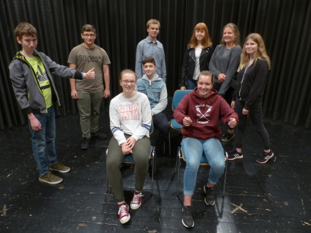 Kirchlengern. Mit großer Neugierde und wenigen Vorabinformationen betraten wir das Forum der Erich Kästner-Gesamtschule. Dort erwarteten uns die Workshopleiter vom Improtheater Alix Heselhaus und Andreas Strietzel. Nachdem die Beiden sich vorstellten, ging es direkt mit einem Kennlernspiel los, damit auch wir uns vorstellen konnten. Mit wenigen Regeln wurden wir in die Welt des Improtheaters eingeführt. Wir lernten einen Vorspann bzw. einen Trommelwirbel kennen, den wir vor jeder Aufführung benutzten. Außerdem lernten wir die wichtigste Regel: Man kann keine Fehler machen! Nach einer kleinen Pause ging es mit einem weiteren Spiel weiter. Bei diesem Spiel lernten wir die verschiedenen Emotionen kennen: Straight, strange, schwer und leicht. Dies übten wir ausführlich, um dann das Spiel vorzubereiten, welches wir abends im Forum der EKG vor großem Publikum aufführen wollten. Bei dem Spiel stellten wir Stühle so auf, dass es wie ein Auto / Taxe aussah. Es saßen immer drei Leute im „Taxi“. Die zwei Darsteller vorne mussten immer die Emotion annehmen, die der neue Passagier mit sich brachte. Nachdem wir einige Durchgänge übten, damit alle elf Schüler an die Reihe kamen, machten wir erneut eine Pause. Wir spielten nach jedem großen Spiel immer ein kleines Spiel, indem wir uns bewegten, um Abwechslung in das Programm zu bekommen. Nach letzten Absprachen für die Aufführung machten wir pünktlich um 13.10 Uhr Schluss. Vor unserem Auftritt am Abend machten wir noch einige Übungen, um uns zu lockern. Um 19.00 Uhr ging es dann los! Wir waren sehr aufgeregt, aber wir freuten uns gleichzeitig sehr, unsere Ergebnisse präsentieren zu dürfen. Alix und Andreas erläuterten den Zuschauern kurz, was wir den ganzen Vormittag gemacht hatten. Da das oben beschriebene Spiel unser Lieblingsspiel war, fiel uns das Auftreten recht leicht und als wir die Bühne verließen, traten Alix und Andreas auch noch einmal auf und zeigten dem Publikum, wie richtige Profis spielen. Insgesamt war es eine tolle Erfahrung, einmal bei so etwas mitzumachen. Es hat uns sehr viel Spaß gemacht und wir danken Alix und Andreas für diesen tollen Vormittag und Abend.