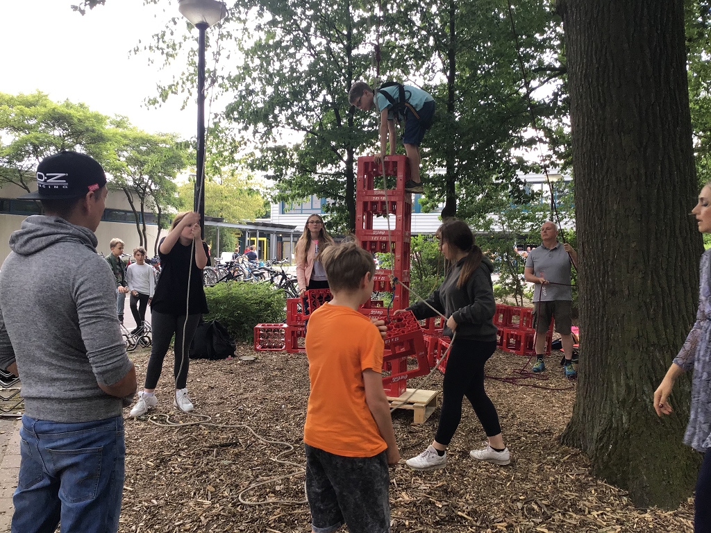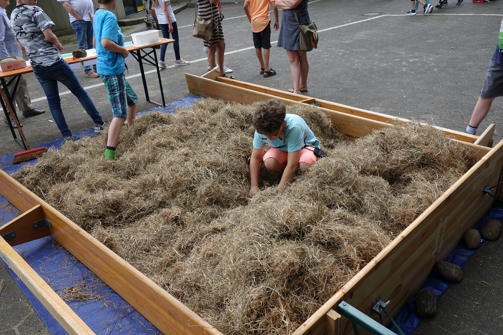 Am Samstag, den 6. Juli 2019 konnten die Besucherinnen und Besucher der Erich Kästner-Gesamtschule aus dem Staunen gar nicht mehr herauskommen. Wie auch bei schülergestalteten Mitmachaktionen wie „Die Nadel im Heuhaufen suchen“, „Strohballenweitwurf“, „Schubkarrenrennen“, „Ringen auf der Bank“, einem „Kartonpuzzle“, dem berüchtigtem „Menschenkicker“, abwechslungsreiche Partien „Riesenmikado“, rasanten „Bobby Car-Rennen“ und vielem mehr? Dazu sorgten Bühnenshows von Trommel- und Ukulelen-AG sowie diversen Bands wie der Lehrerband „Die Schallwellen“ mit ihren Beatles-Covereinlagen für Unterhaltung. Für das leibliche Wohl war auch bestens gesorgt. Über die obligatorischen Bratwurst- und Kuchenbuffets hinaus, sorgte die Internationale Klasse mit allerlei kulinarischen Exotika für Gaumenfreuden. Fazit: Erich Kästner wäre stolz auf die Darbietungen der Schülerinnen und Schüler gewesen. Besucherinnen und Besucher, die an diesem Tag dem Schulfest fern geblieben sind, sei gesagt: Sie haben etwas verpasst!