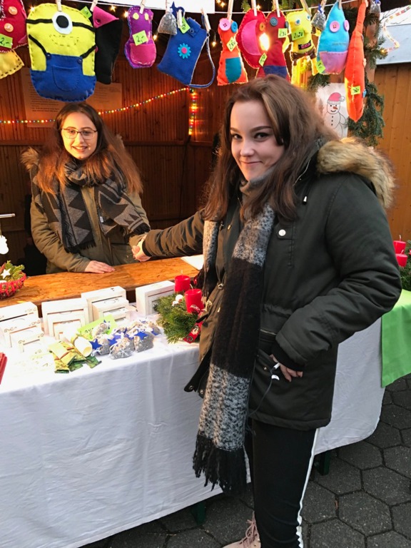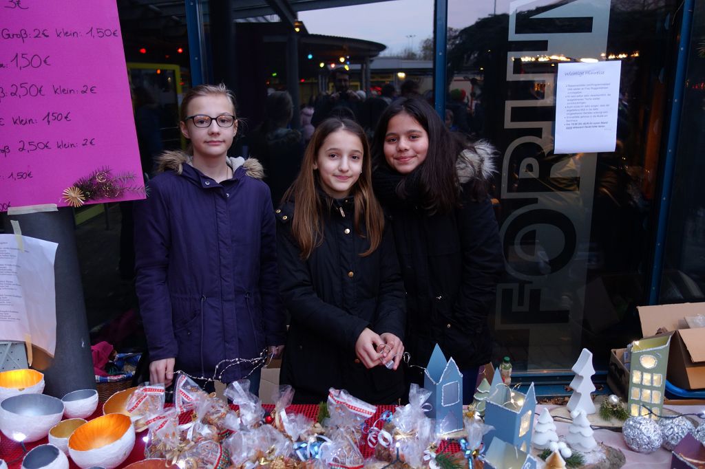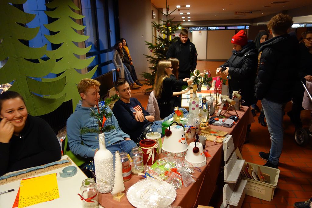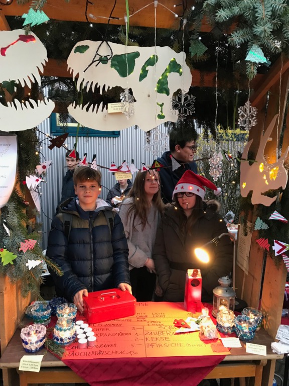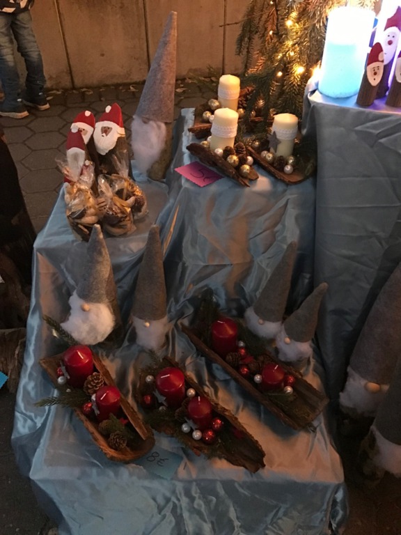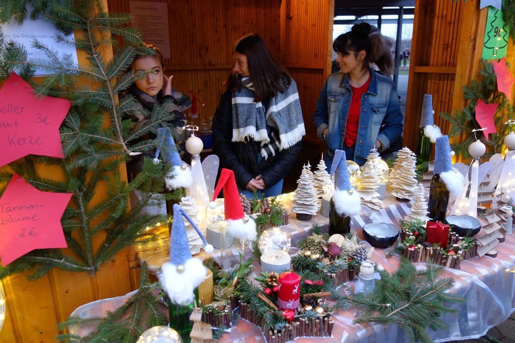 Am Freitag, den 30. November 2018 war es wieder soweit: Treue und neue Besucherinnen und Besucher erfreuten sich an den stimmungsmächtigen Angeboten der Klassen 5 bis 10 sowie der des Fördervereins der Schule. Diese Angebote reichten vom Verkauf der in den zuvor während der Projekttage angefertigten Basteleien und Naschereien bis hin zu stimmungsvollen Attraktionen wie dem Besuch des Weihnachtsmannes, der Vorführungen der Poi-Gruppe und der Trommel-AG sowie den musikalischen Einlagen des Posaunenchors, der mit seinem weihnachtlichen Liedgutrepertoire so manches Herz öffnete.