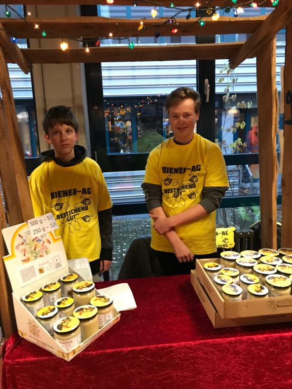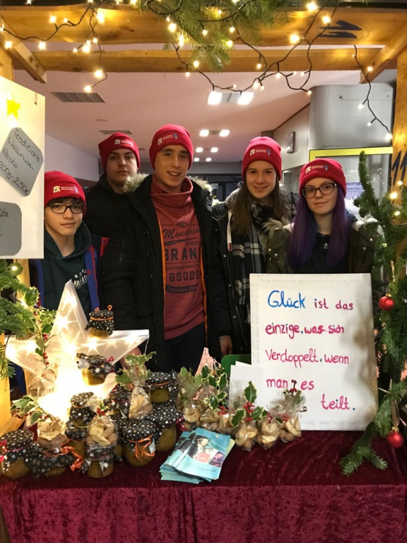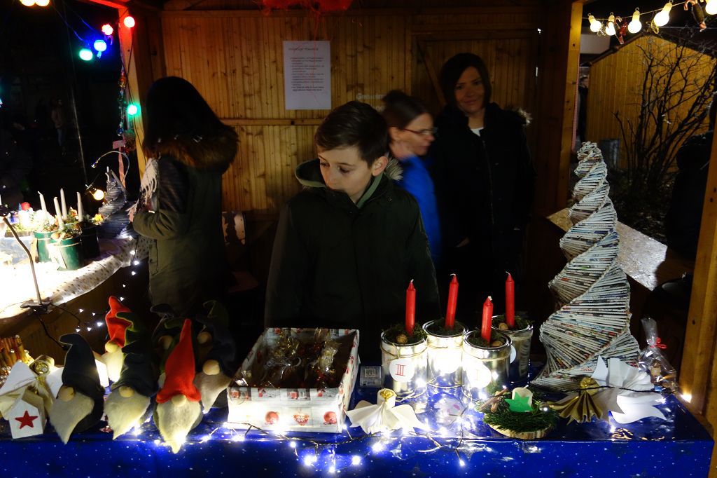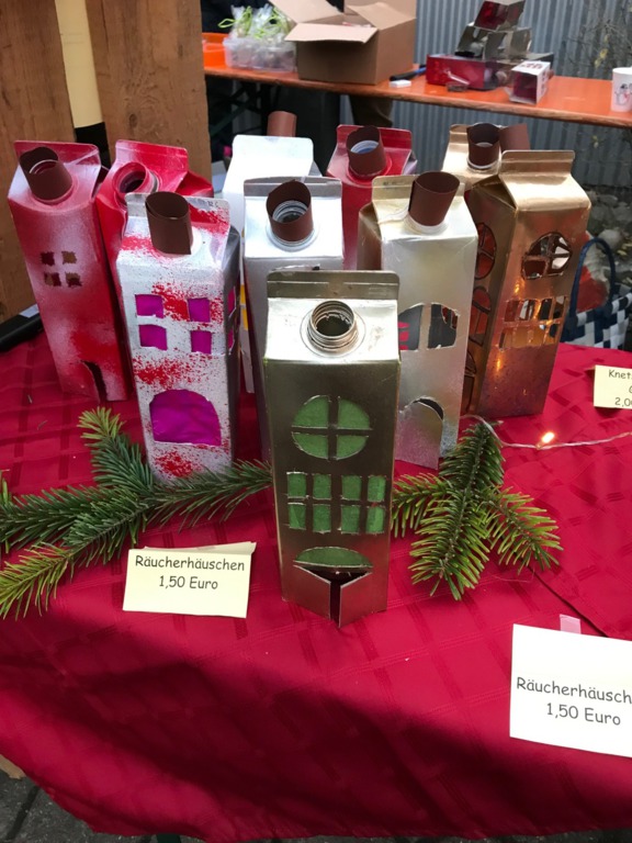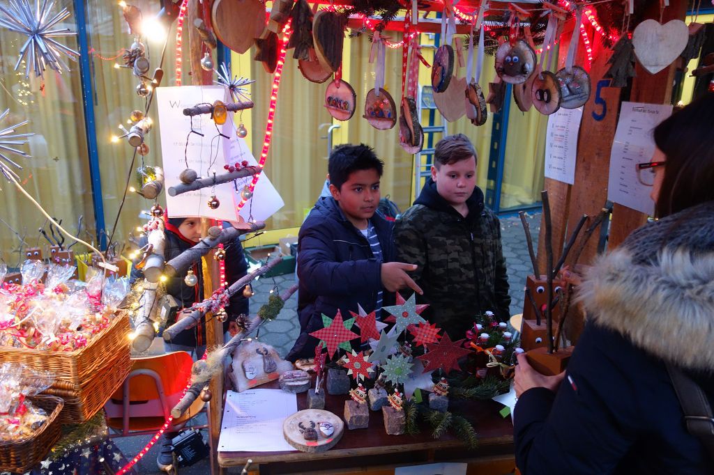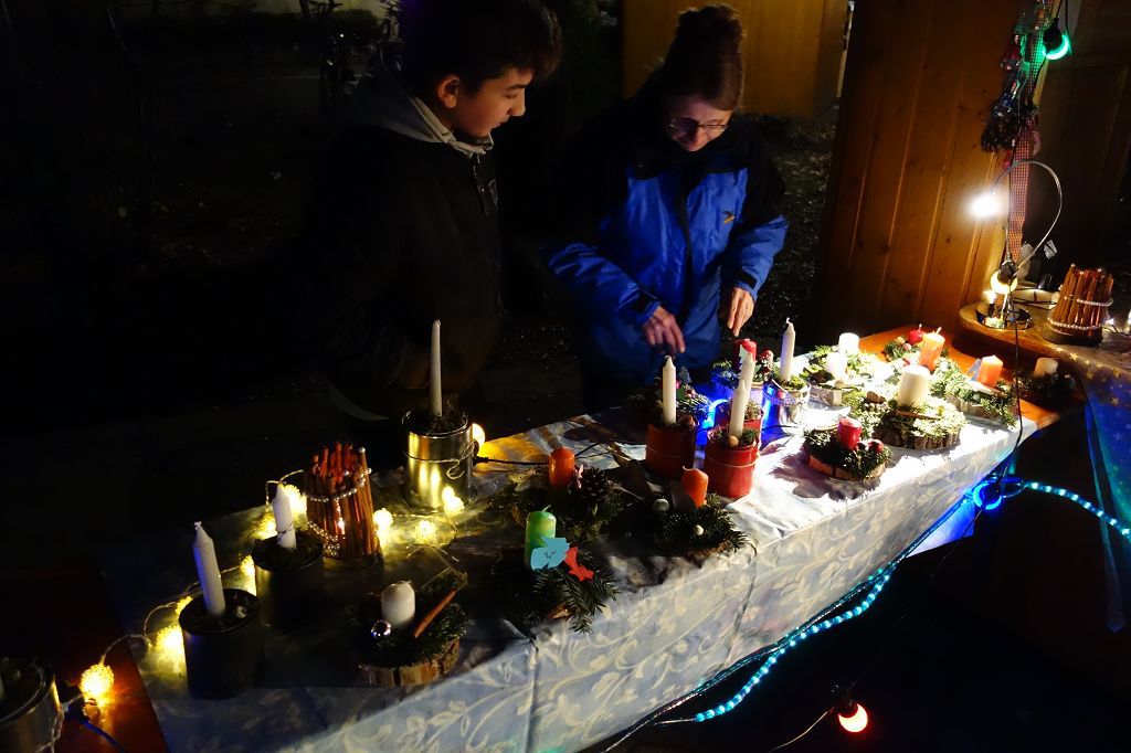 Am Freitag, den 30. November 2018 war es wieder soweit: Treue und neue Besucherinnen und Besucher erfreuten sich an den stimmungsmächtigen Angeboten der Klassen 5 bis 10 sowie der des Fördervereins der Schule. Diese Angebote reichten vom Verkauf der in den zuvor während der Projekttage angefertigten Basteleien und Naschereien bis hin zu stimmungsvollen Attraktionen wie dem Besuch des Weihnachtsmannes, der Vorführungen der Poi-Gruppe und der Trommel-AG sowie den musikalischen Einlagen des Posaunenchors, der mit seinem weihnachtlichen Liedgutrepertoire so manches Herz öffnete.